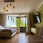 This accommodation provides a balcony and a seating area furnished with a sofa set, along with modern amenities like a TV set. Featuring a walk-in shower and a separate toilet, a bathroom is also fitted with hairdryers and bath sheets.